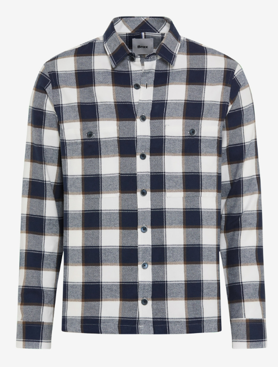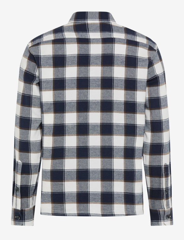 Simple casual design in this white and navy pattern shirt in a soft brushed cotton. Perfect for layering with a t-shirt or sport shirt in an overshirt style and the bigger check pattern lends a better match with your denim or casual bottoms.