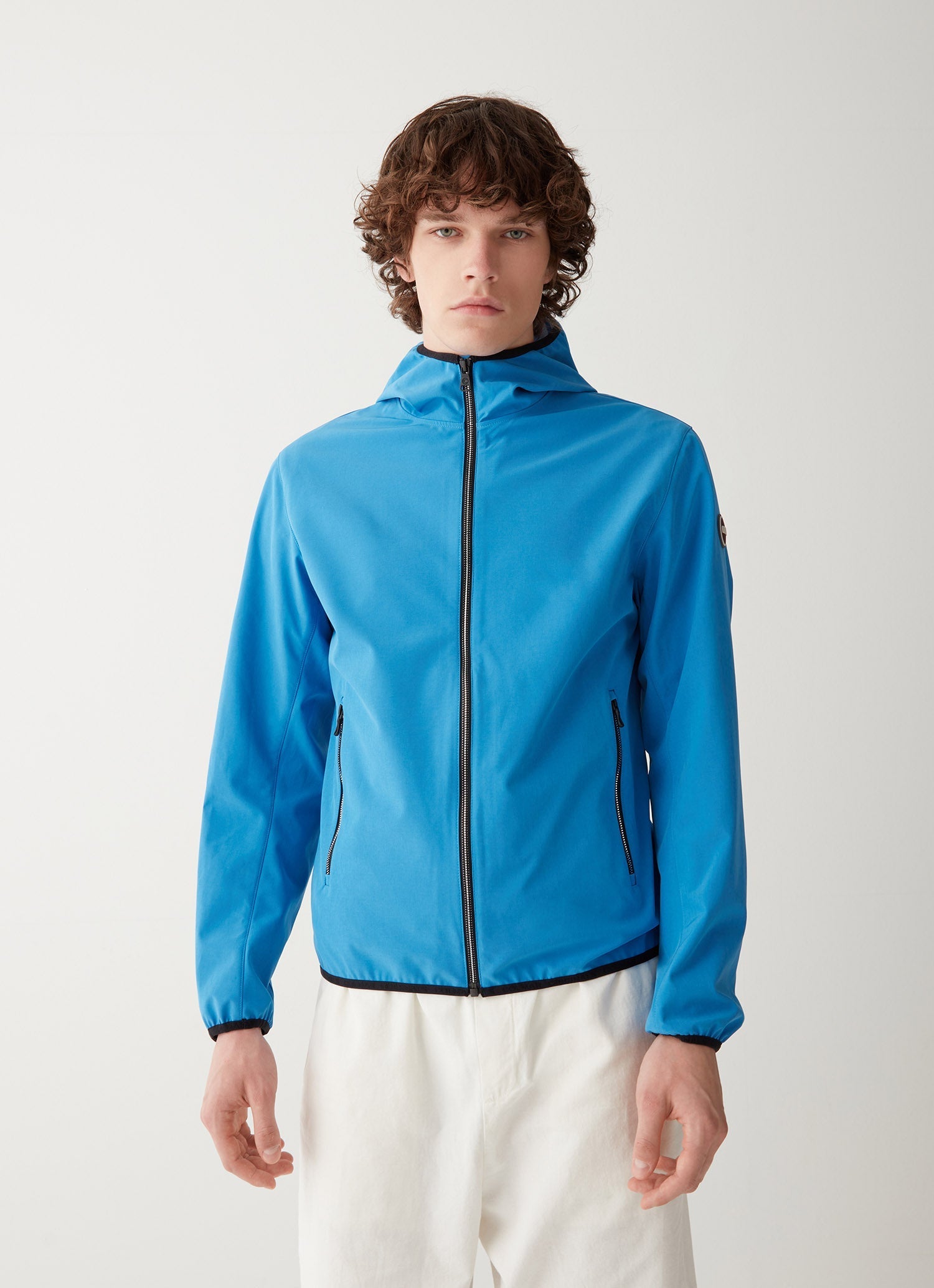 Men’s jacket with hood made of waterproof (5000mm/H2O) and breathable (5000gr/m2/24H) stretch softshell. Water-repellent treatment. The cosy and practical fabric enables a free range of motion. Style detail: the Colmar Originals transfer lettering on the internal fly in the colour of the fastener. A versatile must-have garment for your wardrobe.