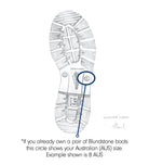 • Please note that half sizes in Blundstones are a bit unusual—they do not increase the length of the boot. Instead, they increase the amount of space over the foot by adding more leather creating a wider fit.