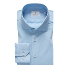 This powder blue solid Modern 4Flex stretch knit shirt comes with our Byron collar and white buttons with contrast powder blue stitching.