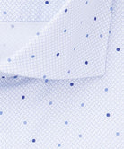 This light blue shirt has a lively polka dot print in different blue shades. A great shirt for both formal and casual looks. Slim fit, with a cutaway collar and single cuffs.