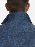 Mix it up with our 100% cotton knit sport shirt with allover floral motif. Pops of paisley line the cuff and collar while solid ribbon trim can be found at the inner placket.