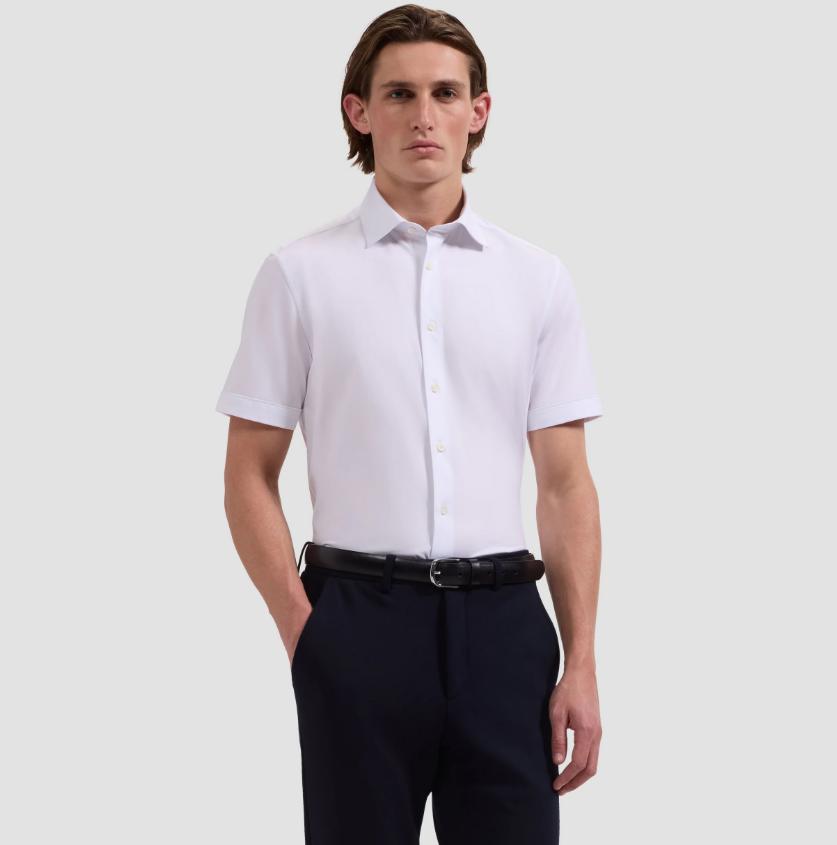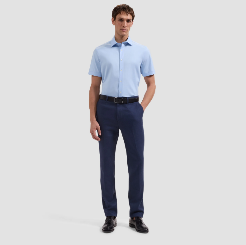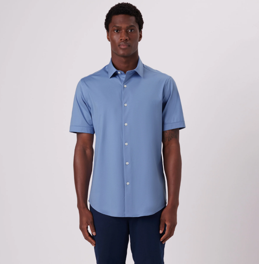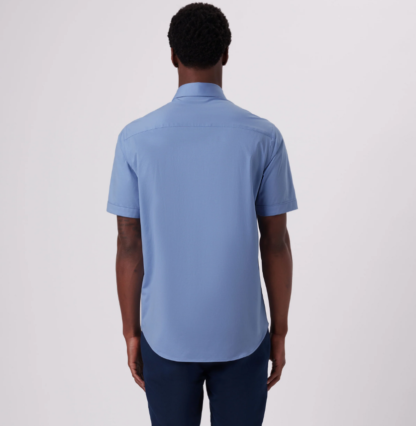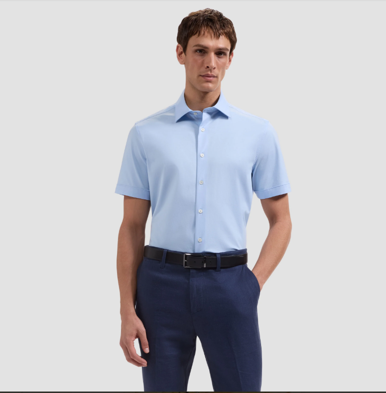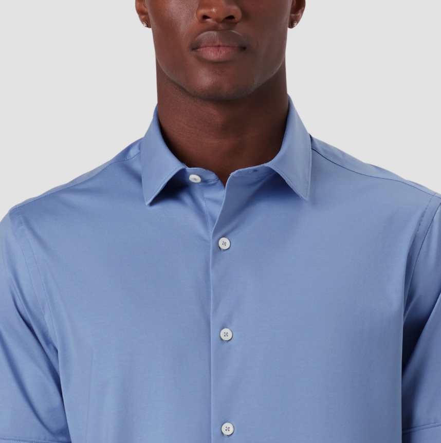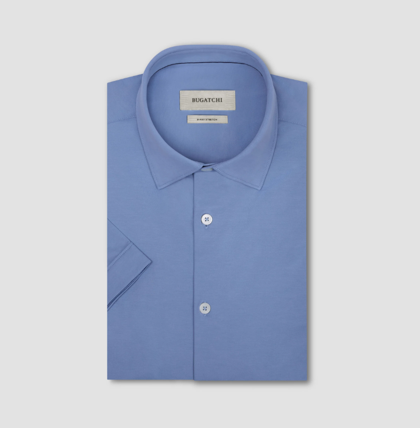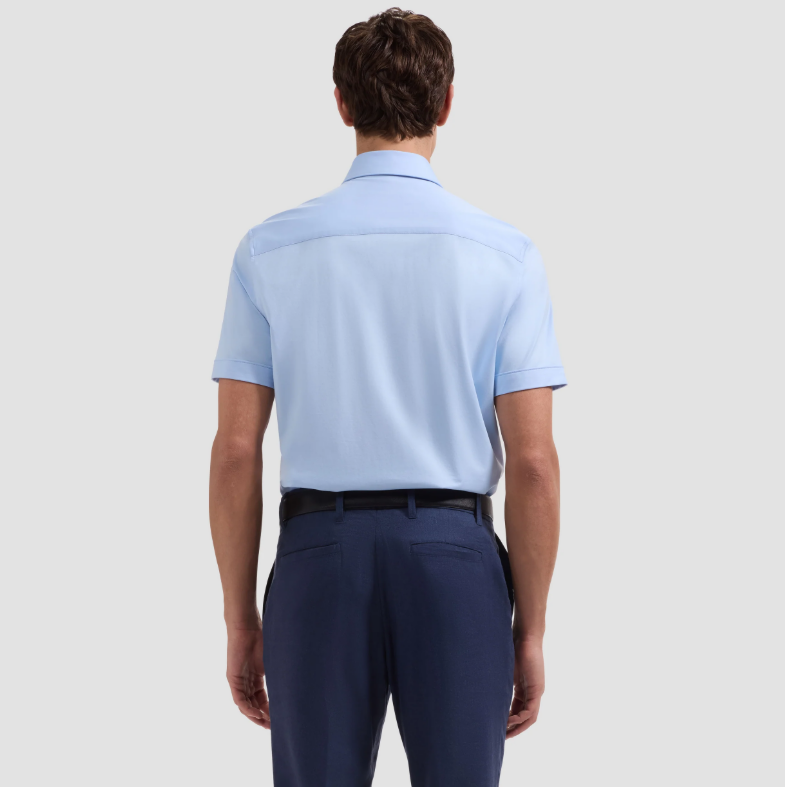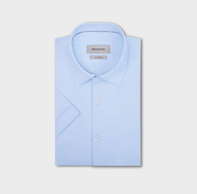 BUGATCHI - Miles Solid OoohCotton® Short Sleeve Shirt - Sky Blue