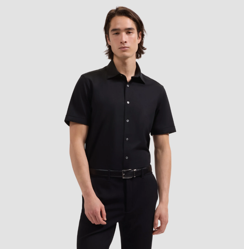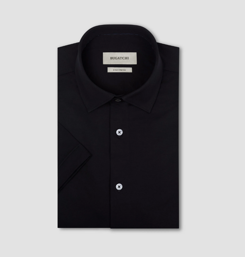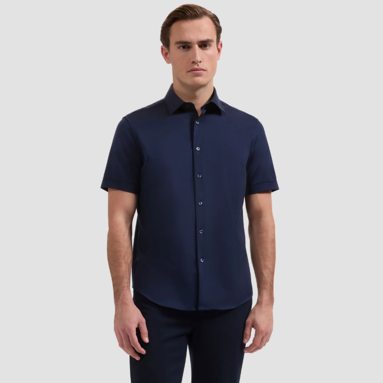 BUGATCHI - Miles Solid OoohCotton® Short Sleeve Shirt - Navy