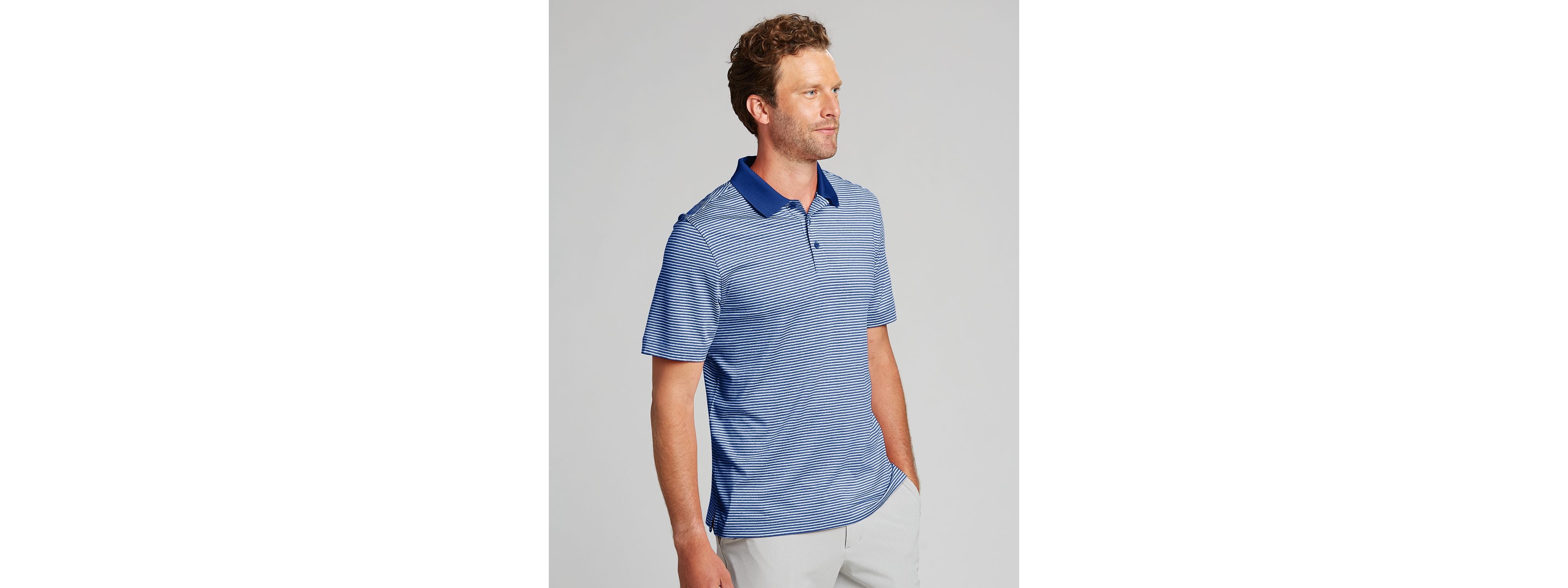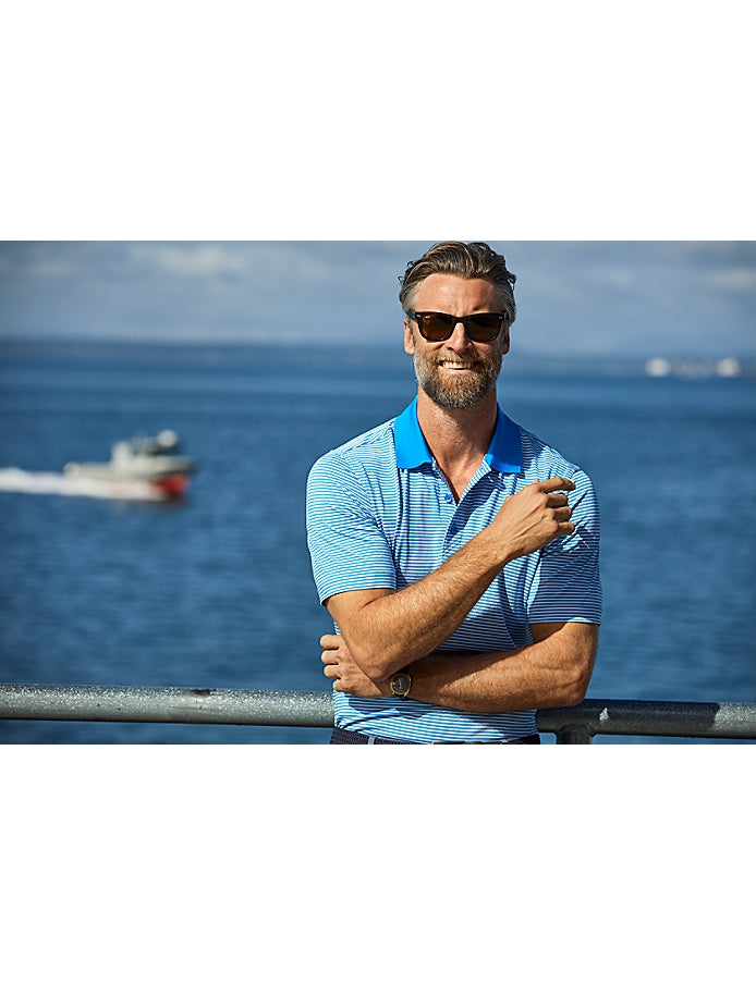 The iconic short sleeve Forge Tonal Stripe Stretch Polo is engineered with stretch for exceptional versatility, designed to be your favorite super soft men's striped Polo shirt for the golf course, the clubhouse, the office, or for date night. Supremely soft and stretchy, the high quality fabric is a perfect blend of DryTec polyester and spandex, giving you ultimate performance, comfort, and style.