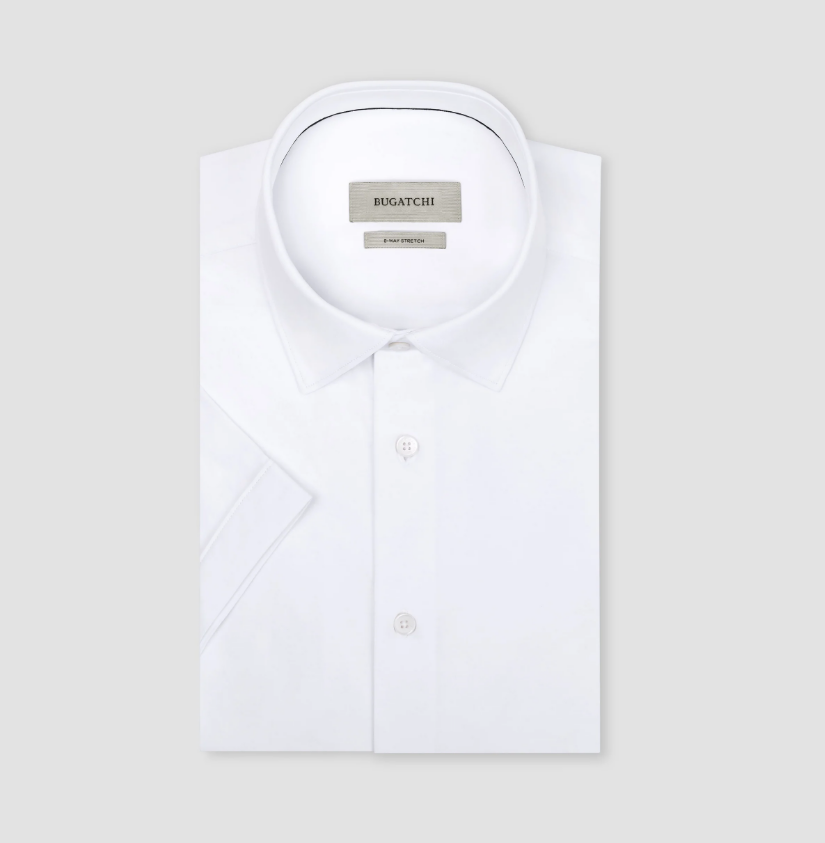 BUGATCHI Miles Solid OoohCotton® Short Sleeve Shirt - White