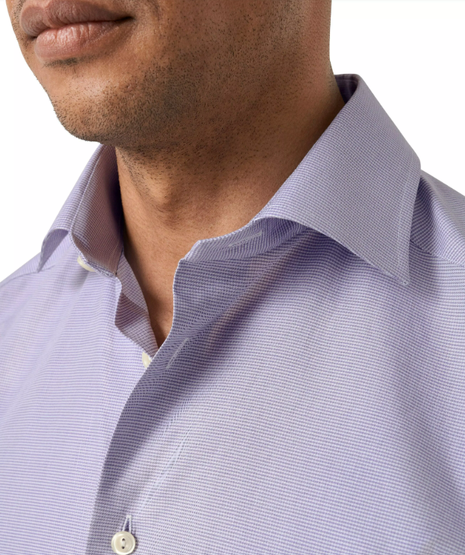 A soft touch and wrinkle-resistant finish lend comfort and confidence to your business or smart casual style in this eye-catching cotton shirt updated with a micro-check print.