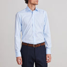 This light blue solid Natural Stretch Yoga Twill Premium Luxury Dress Shirt comes with our Rialto collar and matching white buttons.