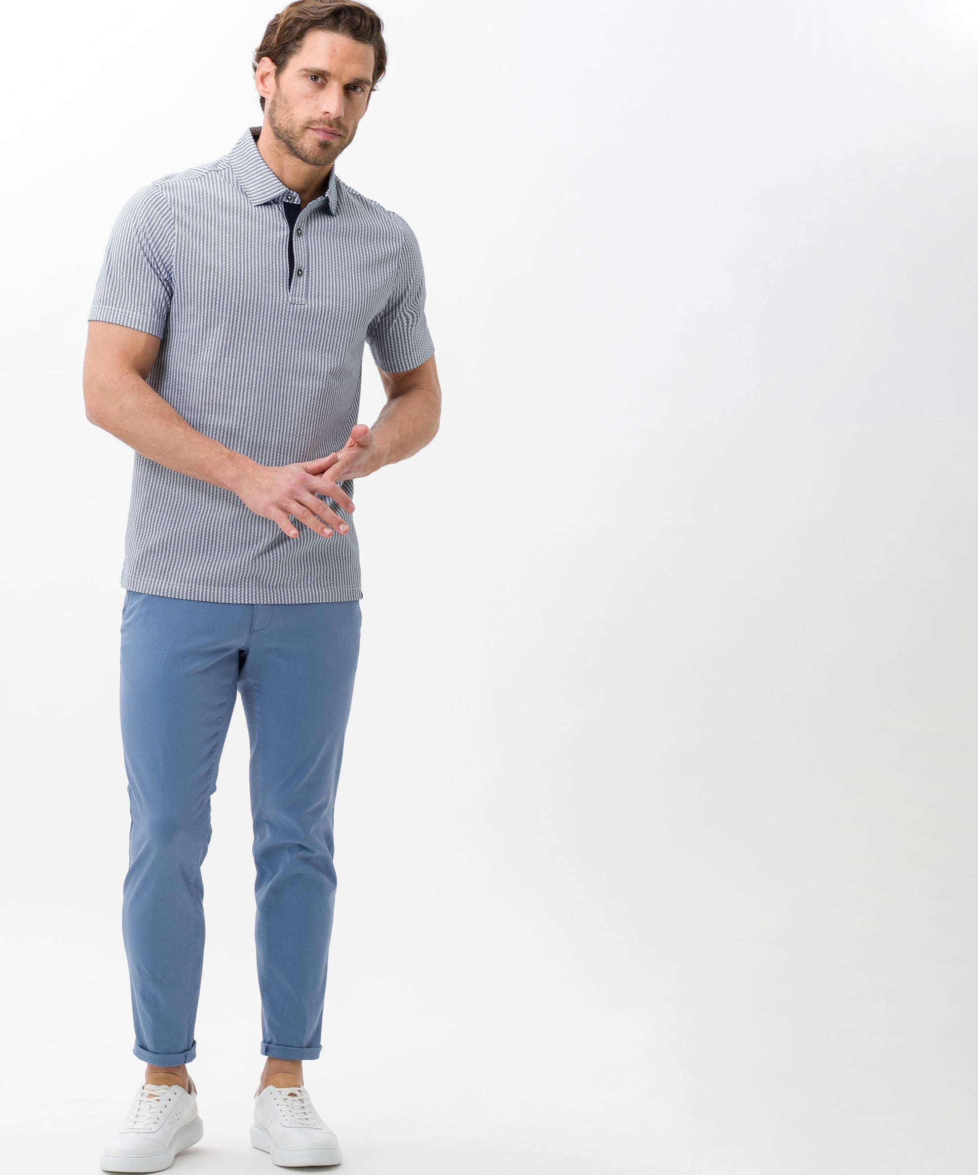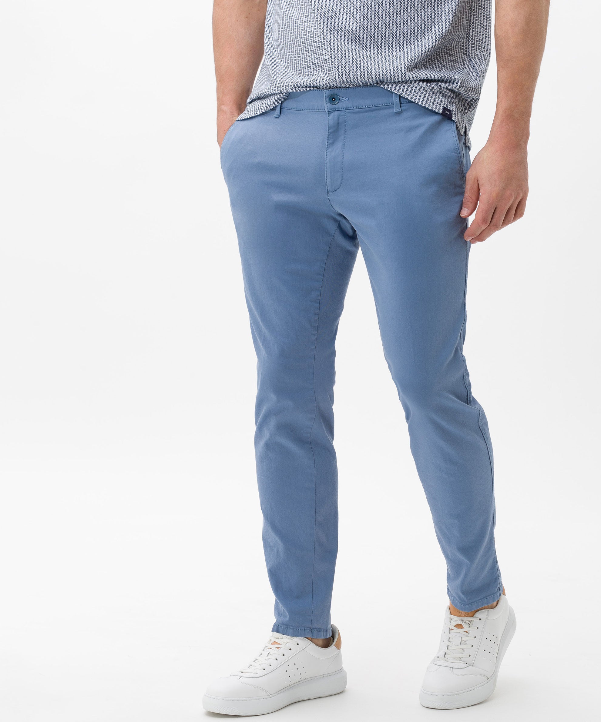 For men, the Style SILVIO is a trend item. Smart with a shirt or modern with a polo shirt - the chinos look good in a classic and casual look. The slim fit men's pants have an optimal fit with a slim cut and a regular rise. The appealing look of these pants is particularly due to the elaborate pocket design. In addition, they feature decorative rivets and imitation leather trims. Movement without limits: The extremely elastic Hi-Flex fibers guarantee unrestricted freedom of movement due to High Stretch - exclusive to BRAX. The sustainable, easy-care and skin-friendly cotton mix also offers an excellent feel with these chinos.