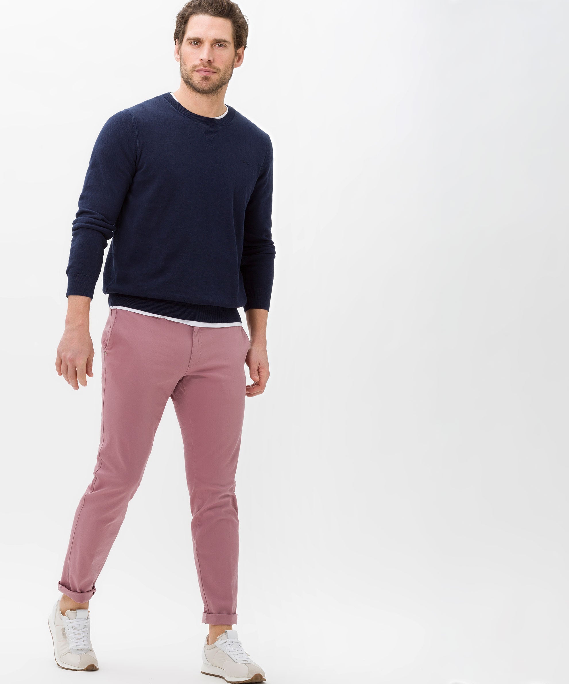 For men, the Style SILVIO is a trend item. Smart with a shirt or modern with a polo shirt - the chinos look good in a classic and casual look. The slim fit men's pants have an optimal fit with a slim cut and a regular rise. The appealing look of these pants is particularly due to the elaborate pocket design. In addition, they feature decorative rivets and imitation leather trims. Movement without limits: The extremely elastic Hi-Flex fibers guarantee unrestricted freedom of movement due to High Stretch - exclusive to BRAX. The sustainable, easy-care and skin-friendly cotton mix also offers an excellent feel with these chinos.