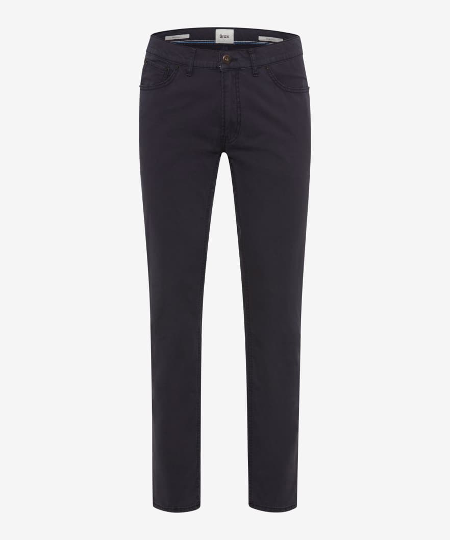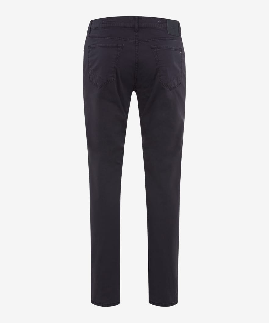 A trend piece for men - the Style CHUCK. Fashion-conscious and smart, combine comfortable sneakers or boots with these five-pocket pants. The modern fit men's pants are fashionable and versatile with a slim fit and a regular rise. The proven look of these pants is particularly due to the elaborate pocket design. In addition, they are worked with imitation leather trim and decorative rivets. Exclusive by BRAX: The Marathon fabric. Extra-fine and durable fibers are spun round state-of-the-art elastane yarns for real feel-good moments. The texture, which enlivens the fabric with its eye-catching appearance is also self-confident and exciting. The sustainable, easy-care and skin-friendly cotton mix also offers a first-class feel with these five-pocket pants.