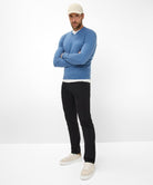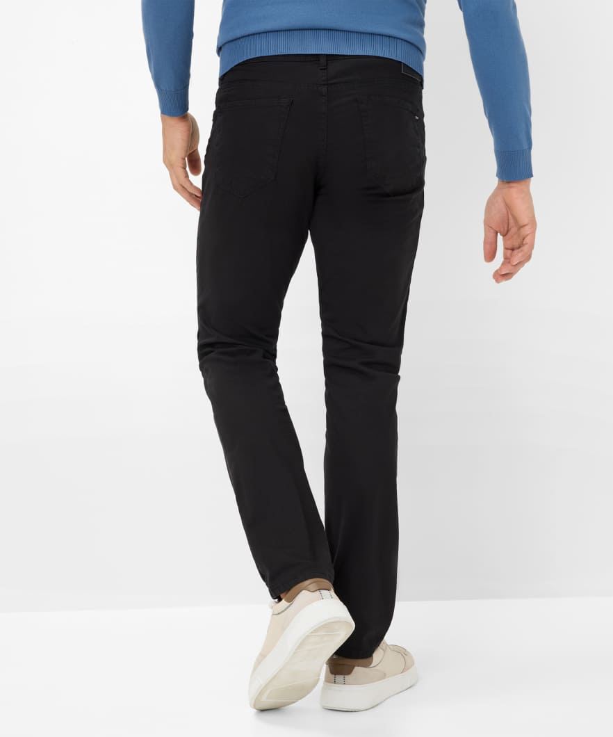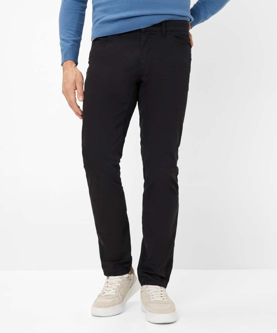 A trend piece for men - the Style CHUCK. Fashion-conscious and smart, combine comfortable sneakers or boots with these five-pocket pants. The modern fit men's pants are fashionable and versatile with a slim fit and a regular rise. The proven look of these pants is particularly due to the elaborate pocket design. In addition, they are worked with imitation leather trim and decorative rivets. Exclusive by BRAX: The Marathon fabric. Extra-fine and durable fibers are spun round state-of-the-art elastane yarns for real feel-good moments. The texture, which enlivens the fabric with its eye-catching appearance is also self-confident and exciting. The sustainable, easy-care and skin-friendly cotton mix also offers a first-class feel with these five-pocket pants.