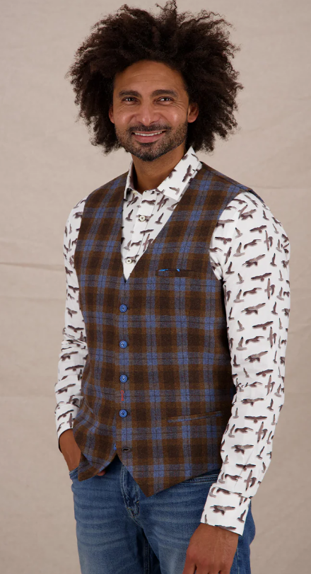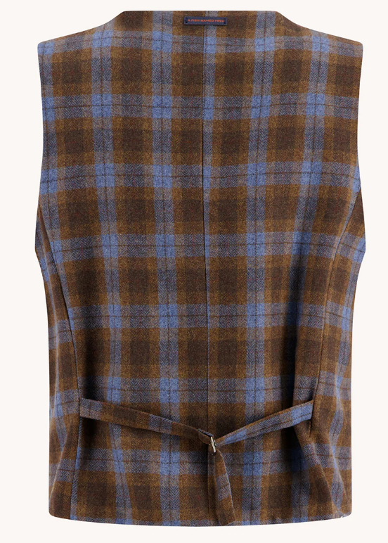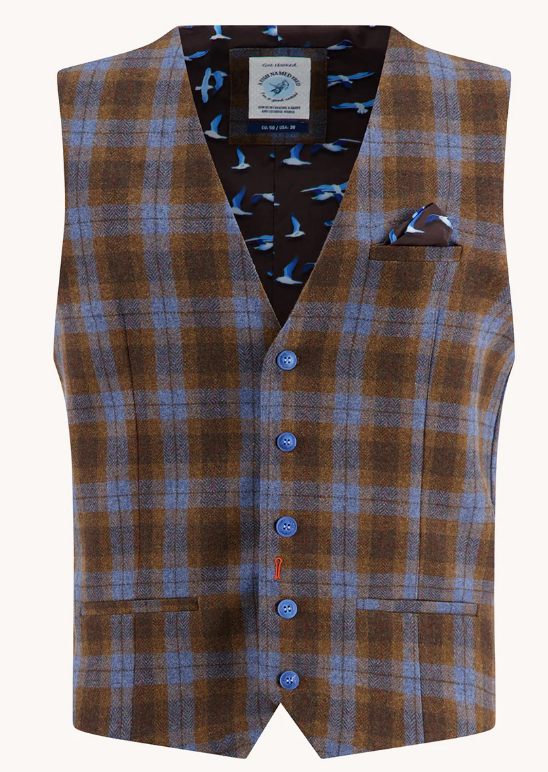 Elevate your formal and smart-casual attire with this distinguished wool Waistcoat. This waistcoat is designed with a check pattern, contributing a classic and sophisticated look, appropriate for various formal settings. The addition of a printed inner lining not only adds an element of style but also makes the waistcoat stand out as a fashionable yet functional garment. Style 32-136