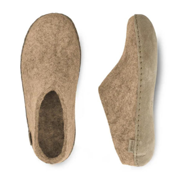 Cold floors warm instantly with your bare feet in glerups Slipper. The secret is the wonder of wool, the breathable fibre that retains the perfect body temperature while wicking away moisture. Felted from ethically sourced 100% natural no-itch wool, glerups Slipper is Danish comfort—without bending or reaching. Slippers nest neatly for zero-space packing. Fun colours borrowed from nature. Soft, yet strong, natural leather soles for around the house, balcony, and campsite. Our passion is felt!