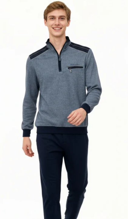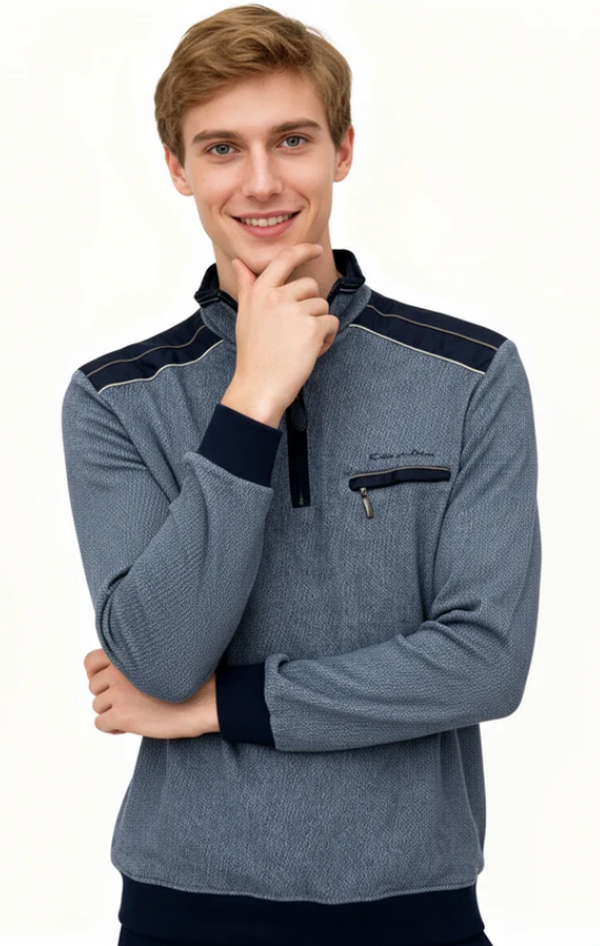 Ethnic Blue Sweater 1/4 Zip | Blue