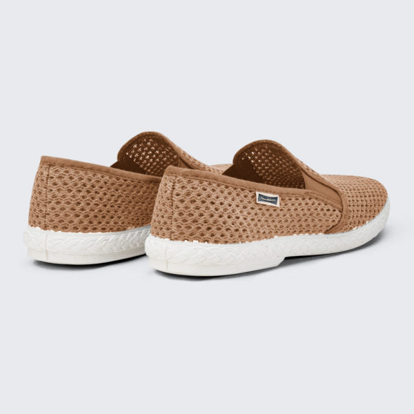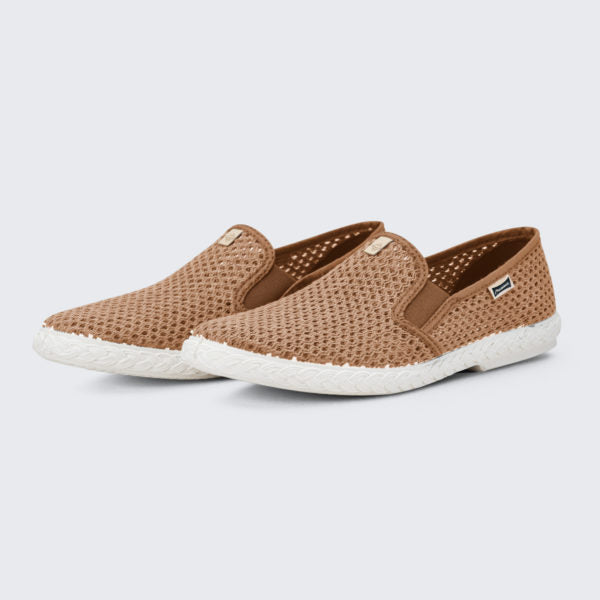 This classic mens slip comes with cotton mesh uppers and with elastic straps for a great fit and natural rubber soles for extra comfort . Vulcanized pair by pair in our small family owned factory in La Rioja, Spain.