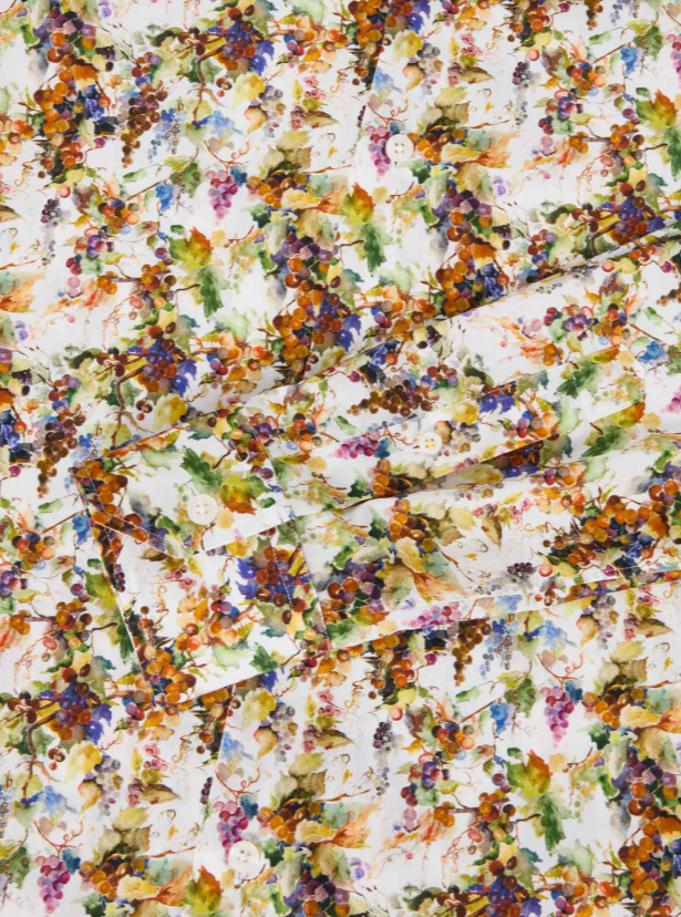 A nod to Northern California’s wine country, the Reynolds Vineyard Print Poplin Shirt is crafted from lightweight 100% cotton and printed with a warm-toned grapevine motif. Designed with a Monterey semi-spread collar, French placket, and single-needle tailoring, it offers a relaxed yet refined approach to seasonal dressing.