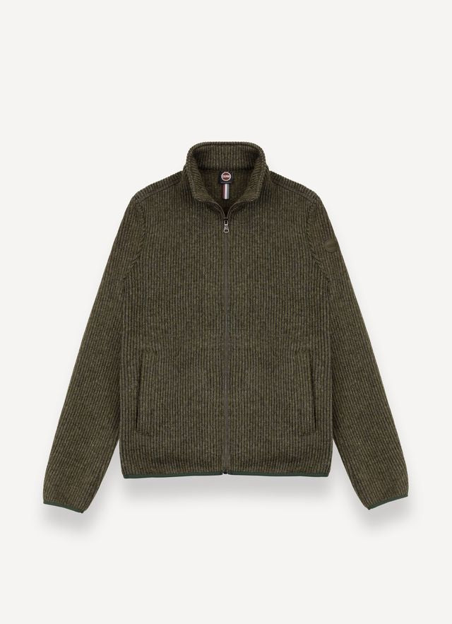 Men's pullover in a virgin wool-blend fabric. This practical and comfortable solid-colour piece features a polo-neck, a metal zip on the front and handy side pockets and boasts a rib knit. A go-to piece with a regular shape, embellished by tonal elasticated tape trimming the cuffs and hem. Perfect as a pullover during the winter or as a warm jacket in the autumn.