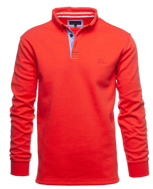 You will appreciate this maya blue polo shirt made in a soft knit. The interior is not brushed inside, it will be ideal for mid-season temperatures.