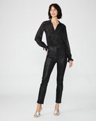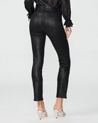 Featuring a high-rise, perfectly straight fit that is lean through the leg, this black coated denim pair is finished with a raw hem and an inseam slit. Cut from our coated TRANSCEND denim for a leather-like look, this style is luxuriously soft and incredibly comfortable with plenty of stretch and recovery to give it a flawless fit from morning to moonlight.