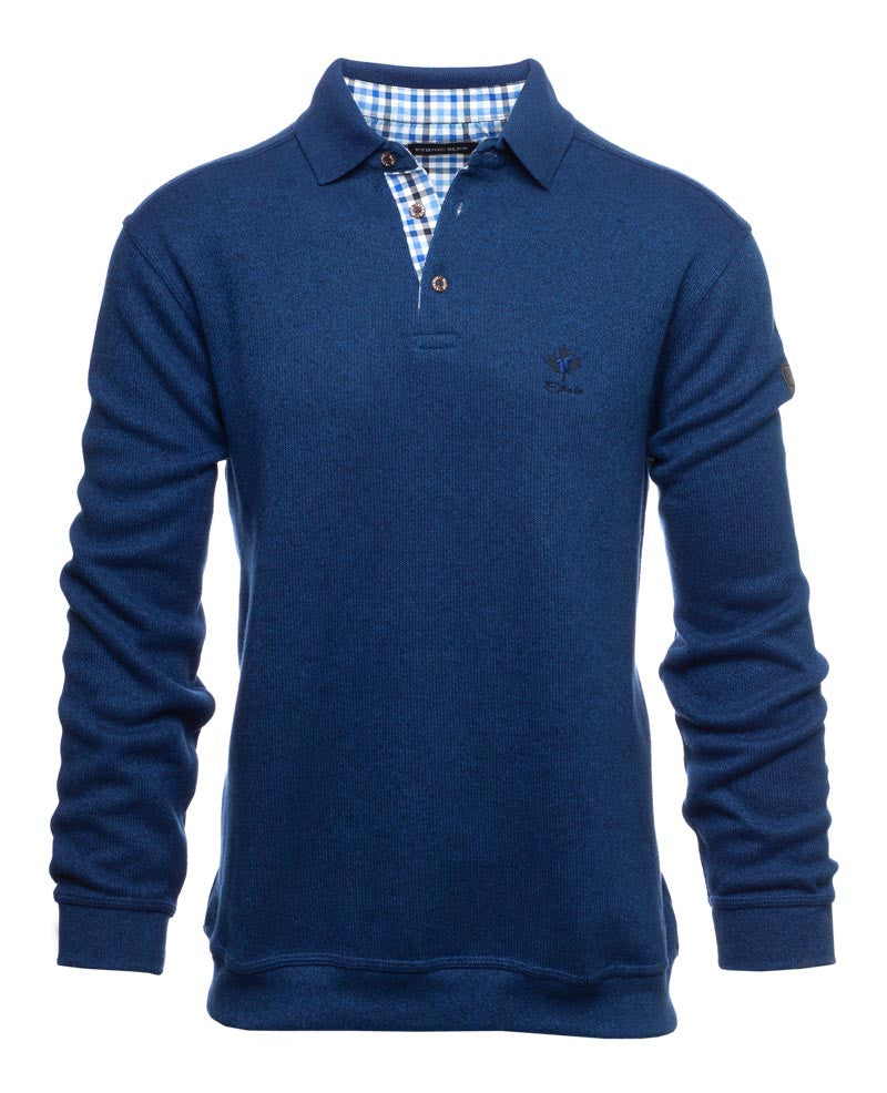 Ethnic Blue - Long sleeve polo-shirt, soft touch